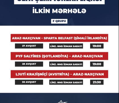 UEFA Çempionlar Liqasının ilkin mərhələsində iştirak edən “Araz-Naxçıvan” bu gün mübarizəyə başlayır. Təmsilçimiz Avstriyada keçirlən qrup oyununda Şimali İrlandiyanın “Sparta Belfast” klubu ilə qarşılaşacaq. Görüş Bakı vaxtı ilə saat 19:00-da start götürəcək.