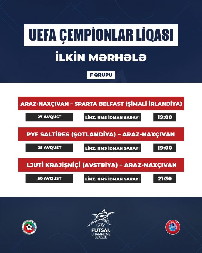 UEFA Çempionlar Liqasının ilkin mərhələsində iştirak edən “Araz-Naxçıvan” bu gün mübarizəyə başlayır. Təmsilçimiz Avstriyada keçirlən qrup oyununda Şimali İrlandiyanın “Sparta Belfast” klubu ilə qarşılaşacaq. Görüş Bakı vaxtı ilə saat 19:00-da start götürəcək.